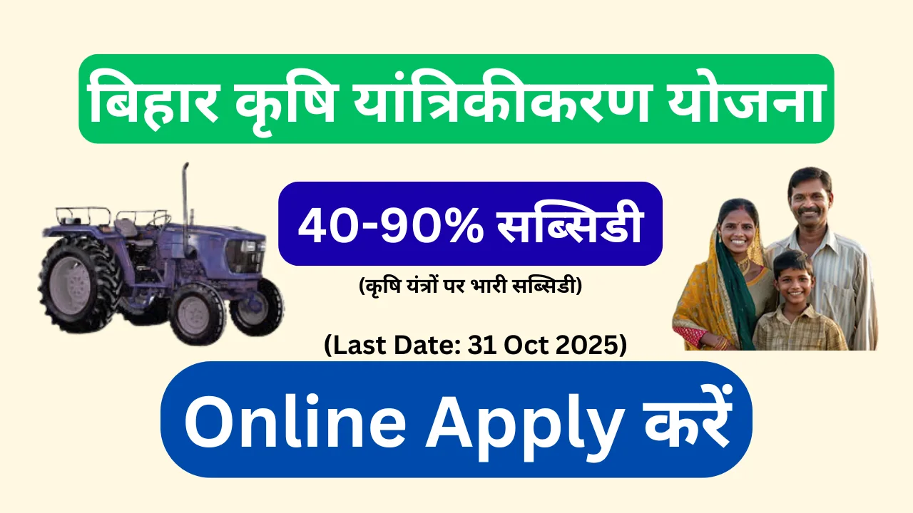 Bihar Krishi Yantrikaran Yojana 2025: ऑनलाइन आवेदन, सब्सिडी लिस्ट और पात्रता